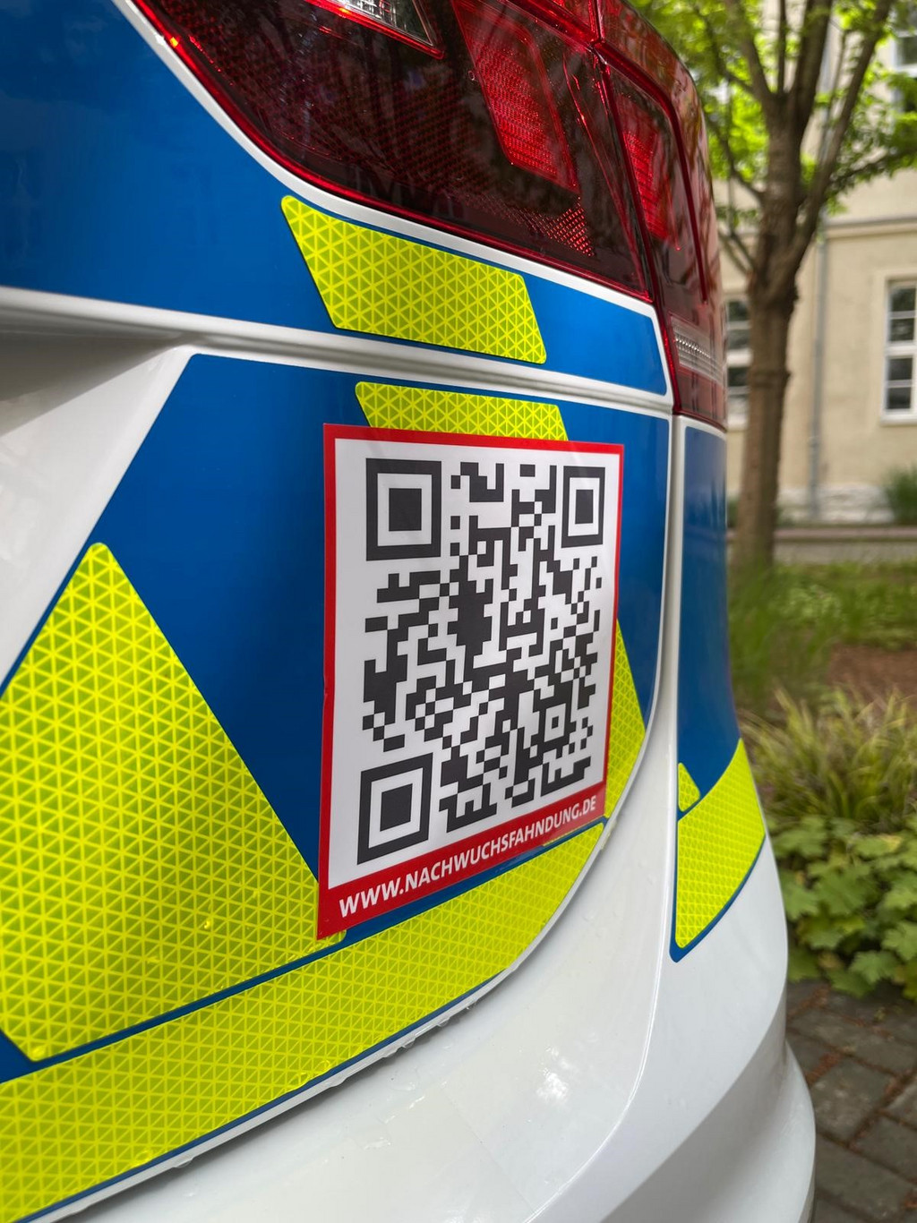 Polizeiautos mit QR-Codes zur Kampagne „Nachwuchsfahndung“ unterwegs