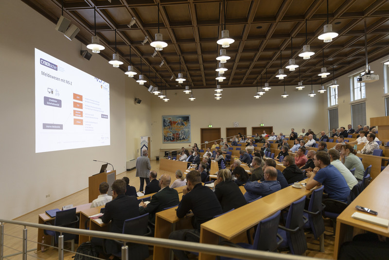 Volker Fett von der Transferstelle Cybersicherheit im Mittelstand ging in seinem Vortrag „NIS 2 – Die EU-Richtlinie zum Cybersicherheitsniveau: Mit mehr Sicherheit in die Zukunft oder ‚Augen zu und durch‘?!“ auf die nationale Umsetzung der im Jahr 2022 vom Europäischen Parlament und vom Rat der Europäischen Union beschlossenen NIS-2-Richtlinie ein, mit der die EU ein gemeinsames Sicherheitsniveau von Netz- und Informationssystemen in der Union sicherstellen will. Das Gesetz zur Umsetzung der NIS-2-Richtlinie (NIS2UmsuCG), welches voraussichtlich Ende 2025/Anfang 2026 in Kraft treten wird, verpflichtet "besonders wichtige Einrichtungen" und "wichtige Einrichtungen", sich bei der gemeinsamen Registrierungsstelle des BSI und des Bundesamtes für Bevölkerungsschutz und Katastrophenhilfe (BBK) zu registrieren und dem BSI erhebliche Sicherheitsvorfälle zu melden. Darüber hinaus müssen Unternehmen künftig geeignete, verhältnismäßige und wirksame technische und organisatorische Maßnahmen des Risikomanagements und der Notfallkommunikation ergreifen und dokumentieren. Notwendiger Bestandteil des Risikomanagements sollen laut Gesetz grundlegende Schulungen und Sensibilisierungsmaßnahmen im Bereich der Cybersicherheit sein. Herr Fett empfahl den anwesenden Unternehmerinnen und Unternehmern, sich rechtzeitig mit der Frage, inwieweit ihr Unternehmen vom NIS2UmsuCG betroffen ist, zu befassen, da die Registrierungspflicht unmittelbar mit Inkrafttreten des Gesetzes beginnt.