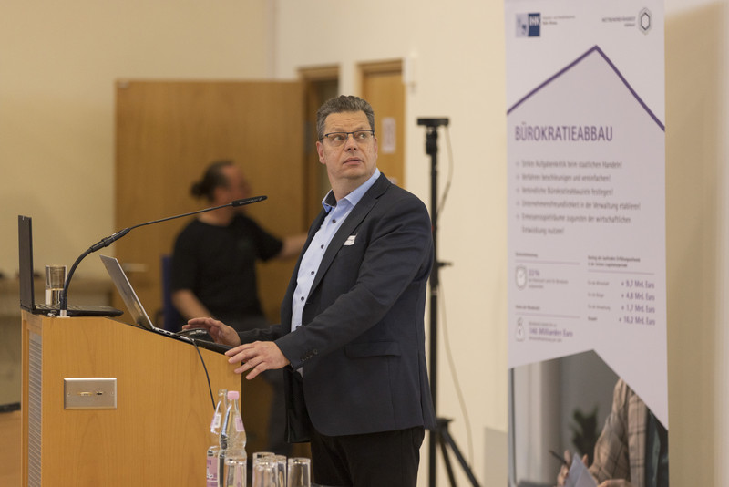Michael Netzband, Leiter des Information Security Management bei dem in Halle (Saale) ansässigen IT-Dienstleistungsunternehmen GISA GmbH, wies in seinem Vortrag „Globale Cyberbedrohungen – lokale Antworten: Strategien für Unternehmen“ auf vier der häufigsten Fehler von Unternehmen im Umgang mit dem Thema Cybersicherheit hin: Oft seien die Verantwortlichkeiten im Ernstfall unklar geregelt, das Thema Cybersicherheit werde ausschließlich an die IT delegiert, Mittel für die Cybersicherheit würden erst nach einem IT-Vorfall (also reaktiv statt präventiv) freigegeben und es werde einseitig auf Compliance statt auf die Stärkung von Resilienz gesetzt. Diese Fehler gelte es zu vermeiden. Hierfür sei es erforderlich, Cybersicherheit nicht als Produkt, sondern als einen Prozess zu denken, in den das gesamte Unternehmen eingebunden werden müsse. Jede Organisationseinheit müsse wissen, was sie im Ernstfall tun kann, ohne auf zentrale Anweisungen zu warten. Wirkliche Sicherheit könne nur dann entstehen, wenn sie in die tägliche Arbeit integriert wird. Herr Netzband formulierte in seinem Vortrag die These, dass eine effektive IT-Sicherheitsarchitektur eine klare Haltung der Unternehmensleitung voraussetzt: Diese müsse nach innen wie nach außen klar kommunizieren, dass Sicherheit kein lästiges IT-Thema, sondern eine Investition in Stabilität sei.