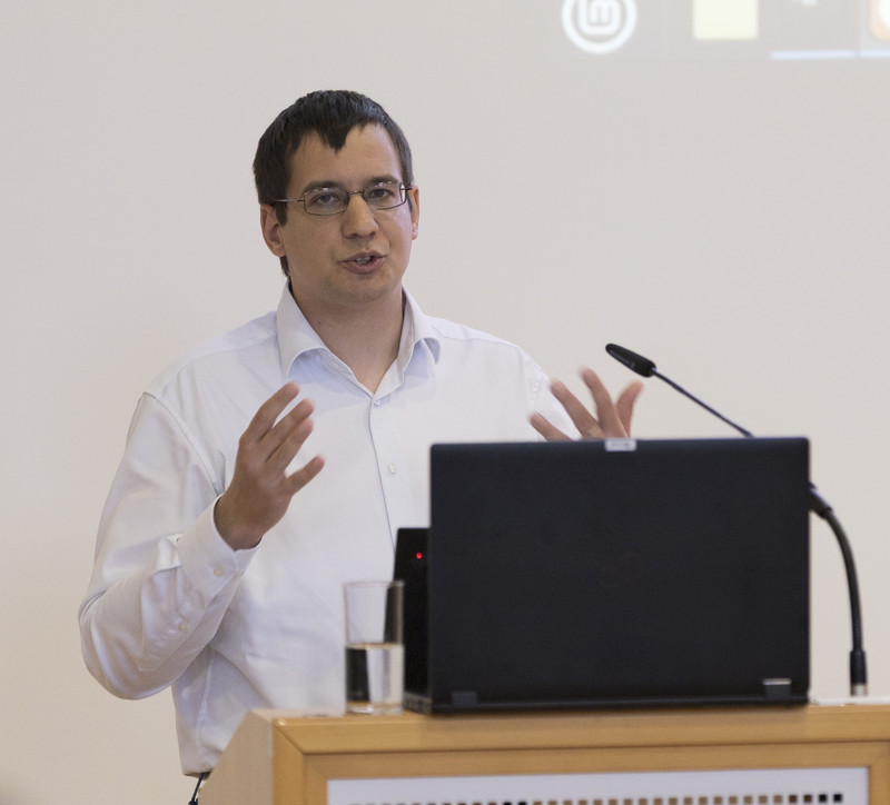 Für seinen Vortrag „Praxistipps: Wie ich in Ihr Unternehmen spazieren würde - … und wie Sie Hackern die Tür verschließen!“ nahm Marian Kogler von dem in Halle (Saale) ansässigen Unternehmen syret GmbH die Perspektive eines Cyberkriminellen ein. Es seien vier Phasen eines Cyberangriffs zu unterscheiden: das Recherchieren von Schwachstellen, das Eindringen in die IT-Infrastruktur, das Weiterverbreiten von Schadsoftware und schließlich das eigentliche Ausführen der Aktion. Herr Kogler wies darauf hin, dass Angreifer unterschiedlichste Mittel nutzen, um in die Infrastruktur von Unternehmen einzudringen: z.B. gefälschte E-Mails, veröffentlichte Schwachstellen oder als vermeintliche Werbegeschenke verbreitete USB-Sticks, auf denen Schadsoftware hinterlegt ist. In seiner Präsentation demonstrierte Herr Kogler diese Phasen anhand einer realen Webadresse.